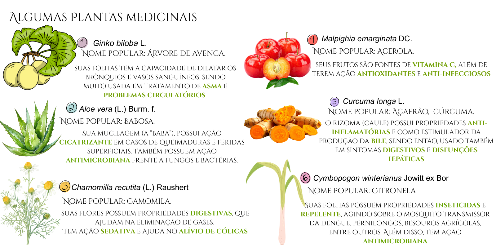 ⇨ As plantas com potencial medicinal fornecem substâncias químicas naturais chamadas princípios ativos que podem estar em diversas partes das plantas, sendo eles, os responsáveis por provocar uma resposta fisiológica ao usuário. As plantas medicinais podem ser usadas diretamente, como nos chás, ou transformados em remédios pela indústria farmacêutica. 🍀🍵🫖